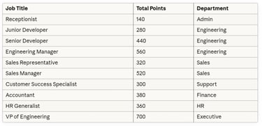 Marketing Manager Total: 150 + 120 + 180 + 150 = 600 points